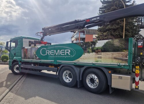 Lieferservice für Natursteine mit eigenen Kran-LKWs