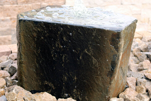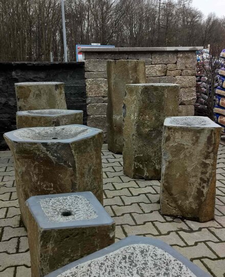 - Beschreibung: mit gestocktem Quellbecken und Bohrung ø ca. 4 cm, Unterseite gesägt