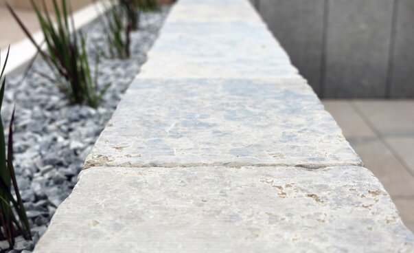 - Beschreibung: Kopfstein, Kopf + Vor- Rückansicht gespalten, sonst gesägt, zweihäuptig, getrommelt, palettiert
