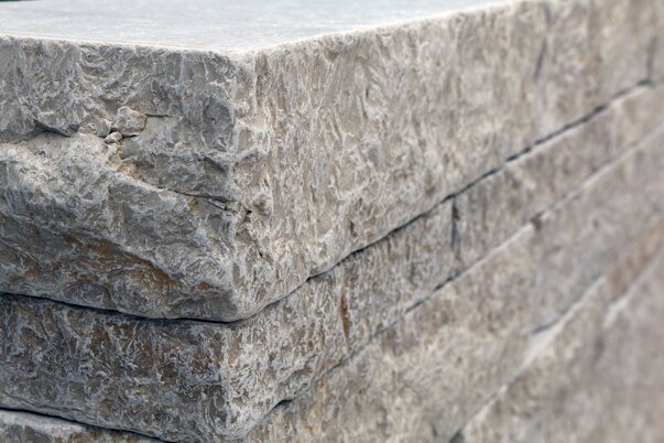 - Beschreibung: ca. 30-60 cm lang, Vor+ Rückansicht gespalten, Lagerfugen + Köpfe gesägt, getrommelt, palettiert,1 to = ca.1,9 qm