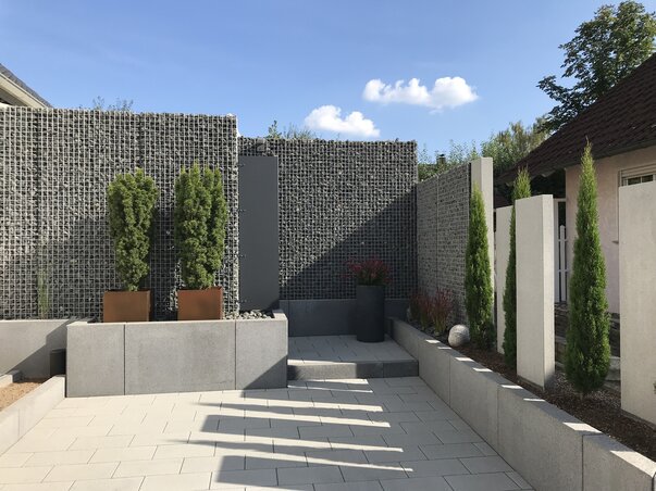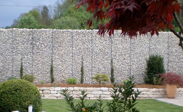 Die Drahtkörbe müssen mit einem ausreichend dimensionierten Fundament immer mind. 20cm einbetoniert werden.