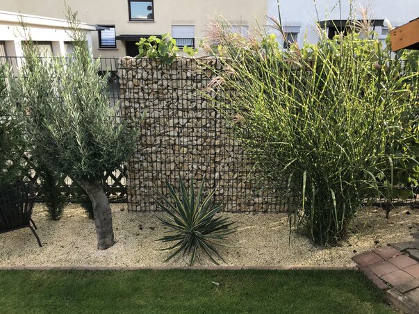 Die Drahtkörbe müssen mit einem ausreichend dimensionierten Fundament immer mind. 20cm einbetoniert werden.
