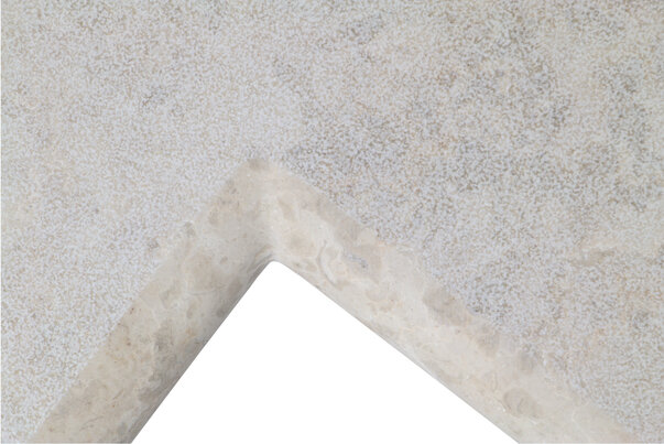 - Beschreibung: Eckplatte, Innenkante mit R=1,5 cm, Oberseite sandgestrahlt+gebürstet, Innenkante geschliffen, Rest gesägt