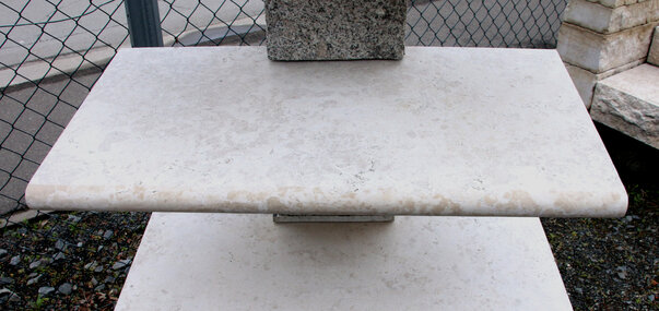 - Beschreibung: Innenkante mit R=2 cm, Ecke mit Radius 10cm, Oberseite sandgestrahlt+gebürstet, Innenkante geschliffen, Rest gesägt