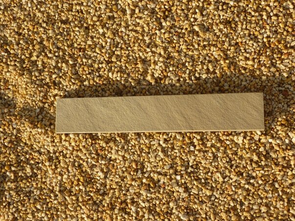 - Beschreibung: Oberfläche spaltrau, eine Längskante geschliffen und gefast, sonst gesägt