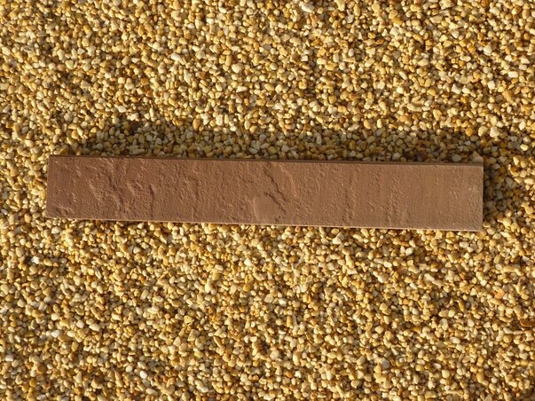 - Beschreibung: Oberfläche spaltrau, eine Längskante geschliffen und gefast, sonst gesägt