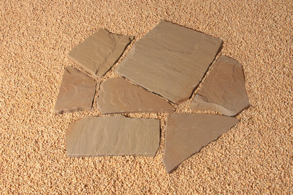 - Beschreibung: Oberfläche spaltrau, Kanten bruchrau, Stärke angepasst, ca. 18 qm/to